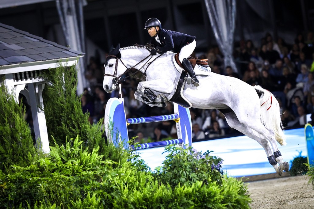 In front of a sold-out stadium, Anthony D’Ambrosio (USA) built a testing track that saw seven pairs advance to a tie-breaking jump-off, led off by another U.S. team rider Lillie Keenan (USA).