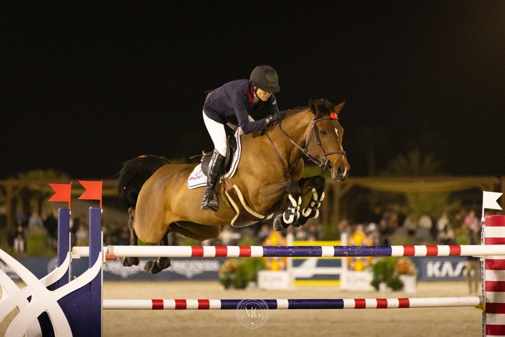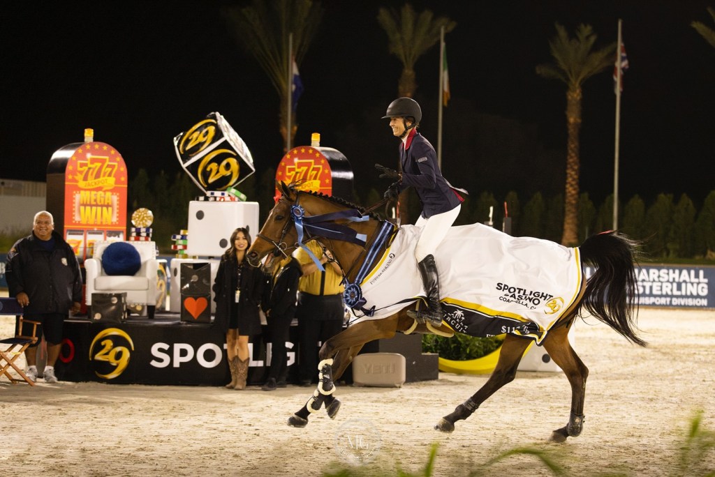 Thermal, California, United States – February 22, 2025 – Each time Keri Potter (USA) asks Kalimera van de Nethe Z to step up to a new challenge, the mare does not just step up, she soars above expectations. On Saturday, February 22, at Desert Circuit 7, Kalimera van de Nethe Z did it again, this time jumping to victory in her very first CSI3* grand prix, the $117,000 Spotlight 29 Casino Grand Prix CSI 3*.