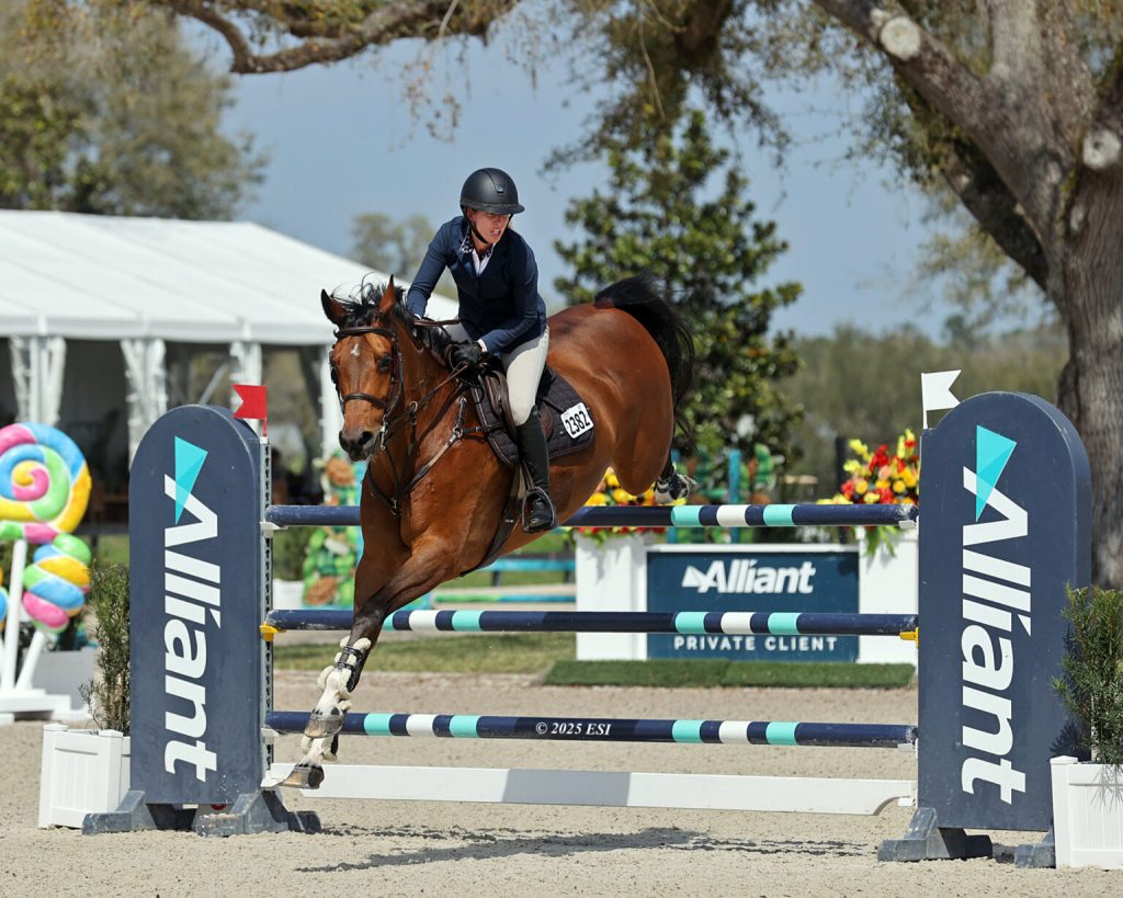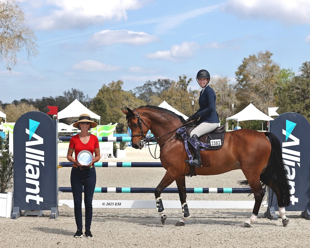 Ocala, Florida, United States – February 27, 2025 – The 2025 Hits Ocala Winter Circuit continued its streak of electrifying competition. Thursday’s $25,000 Alliant Private Client Cup brought another super showdown, with fierce competition until the final ride. Dorothy Douglas (USA) and MTM Pablo, Davenport Farm’s 12-year-old Hanoverian gelding (Perigueux x Contendro I), delivered a blazing jump-off round in 34.173 seconds to claim the top spot.