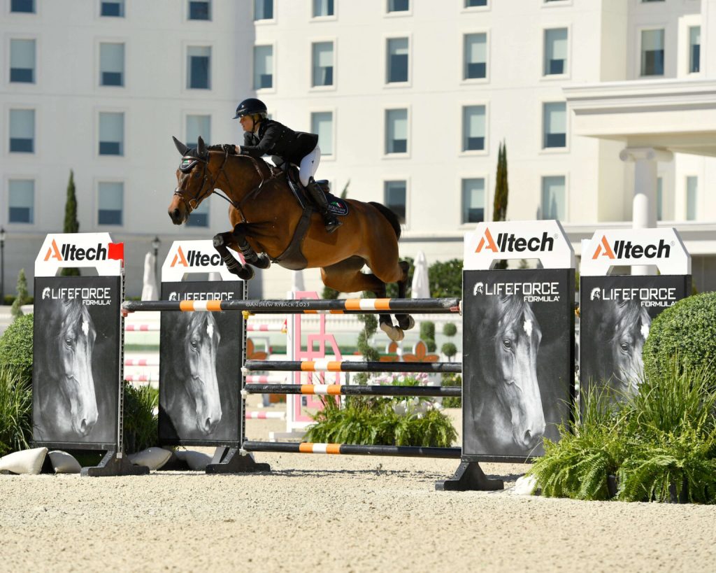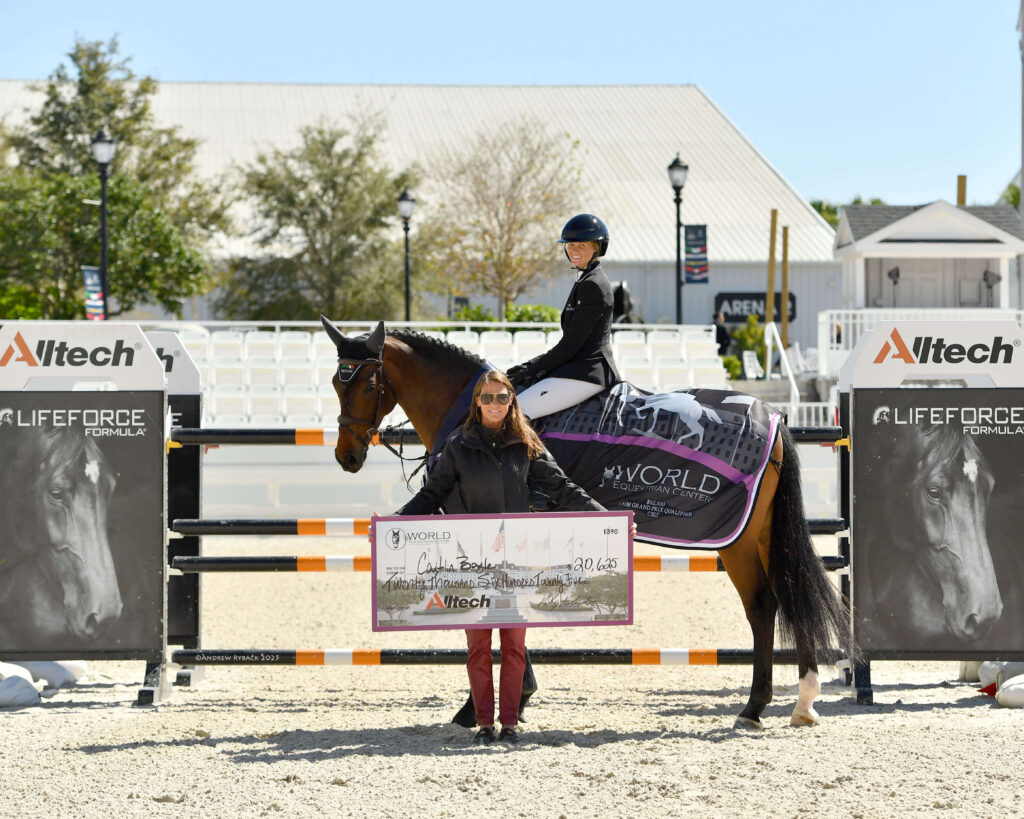 Ocala, Florida, United States – March 06, 2025 – An impressive field of 51 competitors representing 13 nations took to the WEC Grand Arena on Thursday morning for the $62,500 Alltech Grand Prix Qualifier CSI 3*. In the end, it was Caitlin Boyle (USA) who emerged victorious aboard Beyaert Farm’s Prianti van het Mikkenhof, a 10-year-old Belgian Warmblood mare by Thunder Vd Zuuthoeve x Lambada Van Berkenbroeck.