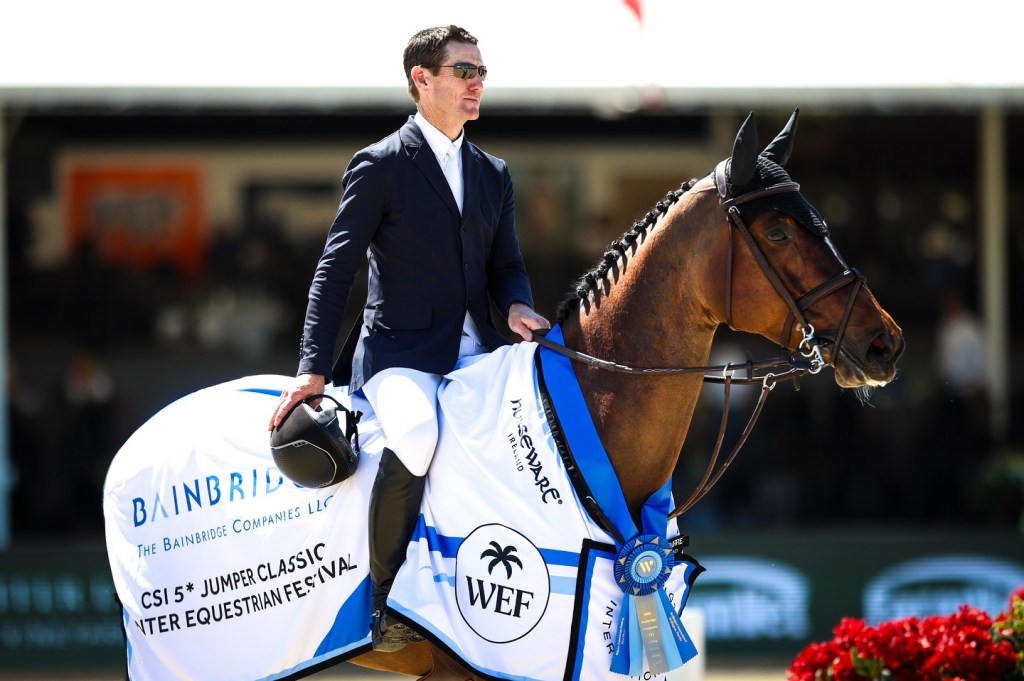 Wellington, Florida, United States – March 07, 2025 – Two-time U.S. Olympic team gold medalist McLain Ward (USA) is back in the Winter Equestrian Festival (WEF) winner’s circle after several weeks off due to injury. On Friday of WEF 9, Ward and First Lady, a mare owned by Robin Parsky, topped the $62,500 Bainbridge Companies CSI 5* 1.50m.