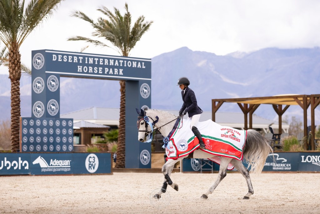 Thermal, California, United States – March 13, 2025 – Since partnering at the end of last year, Kaitlin Campbell (USA) and Bull Run’s Hesed have been making their way up the ranks, and on Thursday, March 13, they made their way straight up to the top of the leaderboard in the $63,000 Morning Star Sporthorses Welcome Stake CSI 4* .