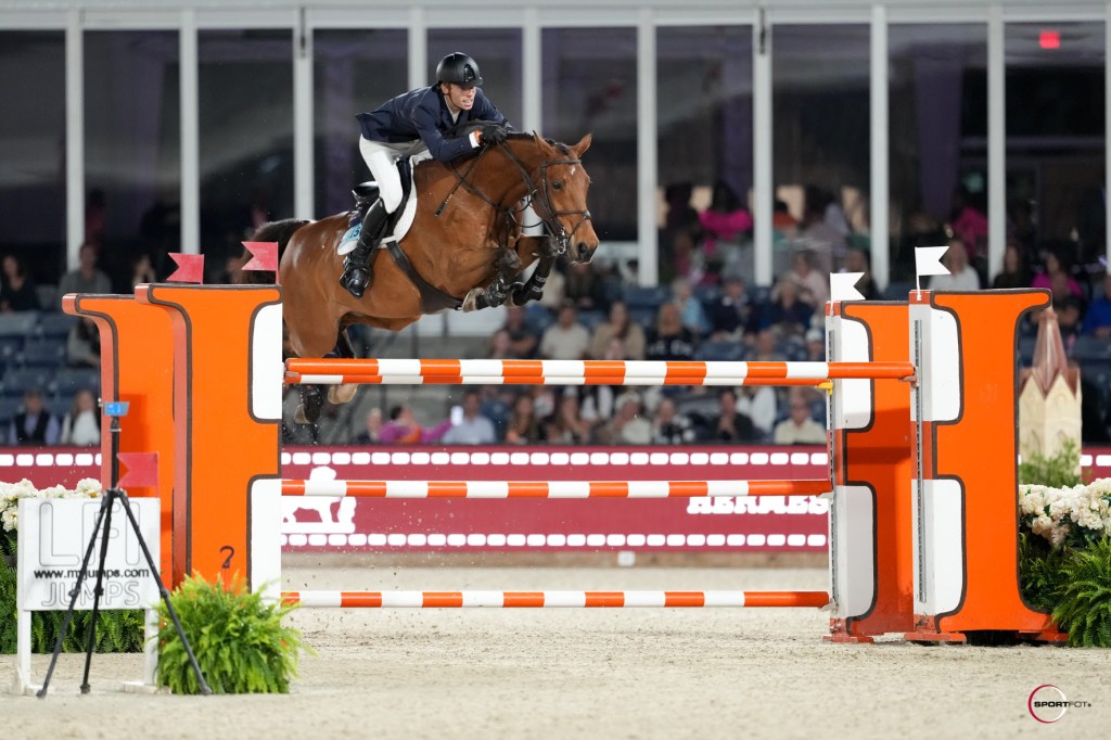 Wellington, Florida, United States – March 22, 2025 – Twelve weeks of Hermès 1.50m competition came to a peak on Saturday evening in the $150,000 Hermès Championship Jumper Series Final CSI 4* – 1.50m during the penultimate week of the Winter Equestrian Festival (WEF) at Wellington International. From a field bursting with international talent, Alex Matz (USA) sealed the deal with longtime partner Cashew CR from a 15-horse jump-off with less than a half a second to spare.