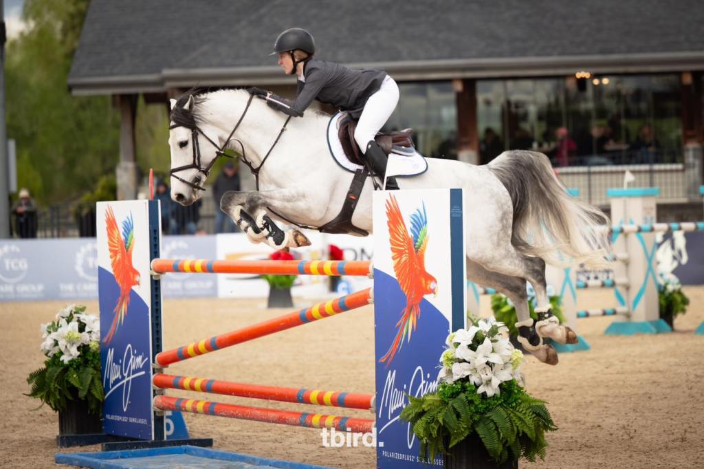 Langley, Vancouver, Canada – April 21, 2025 – Lindsay Sceats (USA) maintains quite a balancing act between her career as a colorectal surgeon and piloting horses to the higher levels, along with being a mom. Proving her mastery Sunday afternoon, she took the win in the $10,000 Maui Jim Grand Prix aboard Amore From Second Life Z, a horse she’s been piloting for about three years.