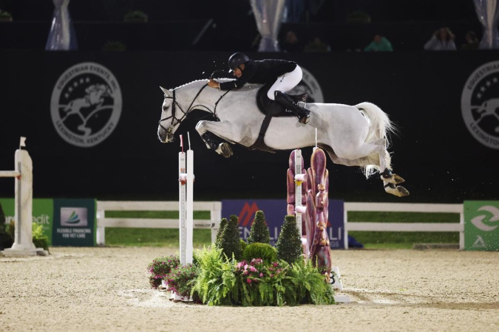 Lexington, Kentucky, United States – April 24, 2025 – Fifty-four horses came forward Thursday evening for the $75,000 Welcome Grand Prix Qualifier CSI 5* – 1.50m for the Kentucky International CSI 5* presented by Hagyard Equine Medical Institute. When all was said and done, the USA’s Aaron Vale (USA) rose to the top of the 11-horse jump-off to take the win in 35.09 seconds aboard Gray’s Inn.