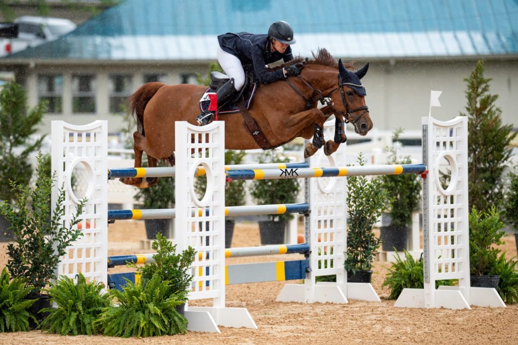 Paul Jewell set a technical track for the week’s main event, where the first round tested riders with an early vertical-oxer-vertical triple combination, a liverpool vertical going away from the gate and the final line with an oxer-vertical double combination going towards the gate. Six combinations advanced to the short course, where they started over a wide oxer to a new vertical, and finished with a quick gallop to the final oxer by the gate.