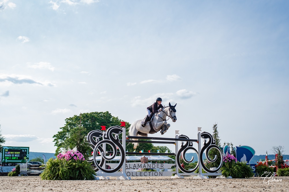 Upperville, Virginia, United States — June 07, 2025 — Emily Dehoff (USA) and Manou de Muze galloped to the win in the $30,000 Salamander Collection Upperville American Standard Grand Prix on Saturday afternoon, besting 45 fellow competitors at the 172nd Upperville Colt & Horse Show presented by Mars Equestrian™. By virtue of her fault-free jump-off round and a blazing time of 34.164 seconds, Dehoff and her 13-year-old grey Belgian Warmblood mare finished atop the podium while Mark Bluman (COL) finished second aboard Starlet (34.77 seconds) and Devin Ryan (USA) rode Mondorado to third place (36.55 seconds).