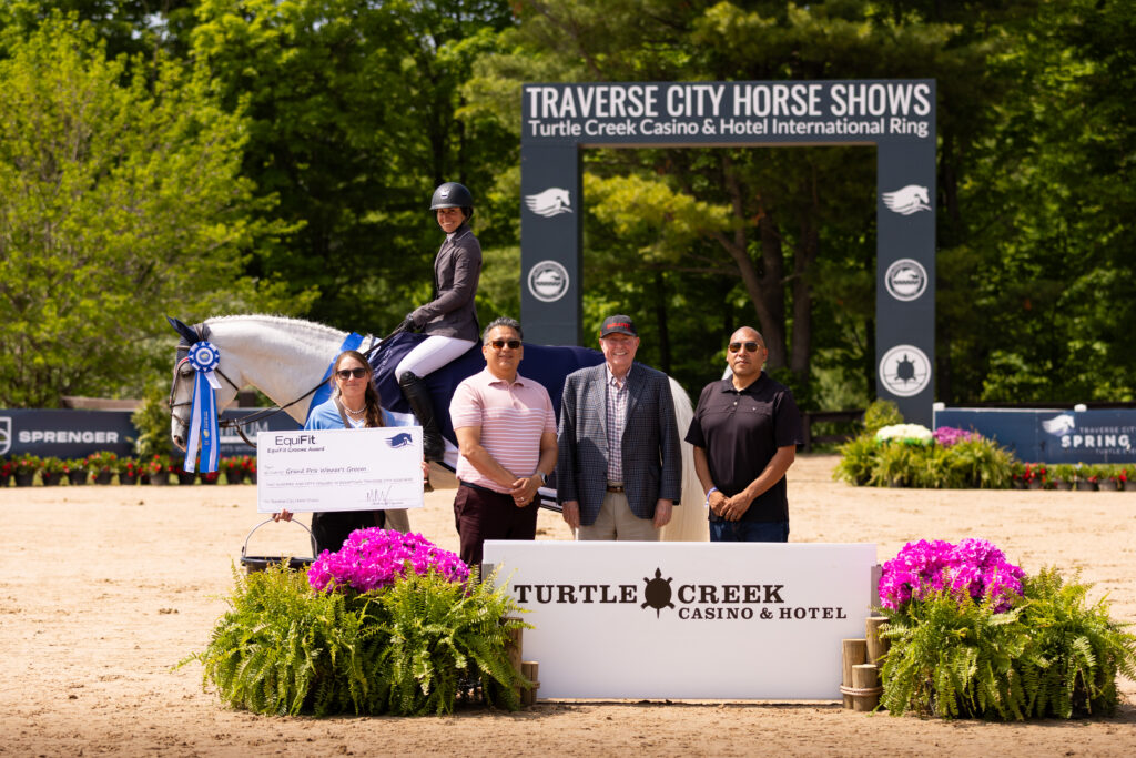 Traverse City, United States – June 15, 2025 – Kaitlin Campbell (USA) pocketed her second win of the week in the $182,000 Turtle Creek Casino & Hotel Grand Prix CSI 4* riding Castlefield Cornelious during the Traverse City Spring Series at Flintfields Horse Park.