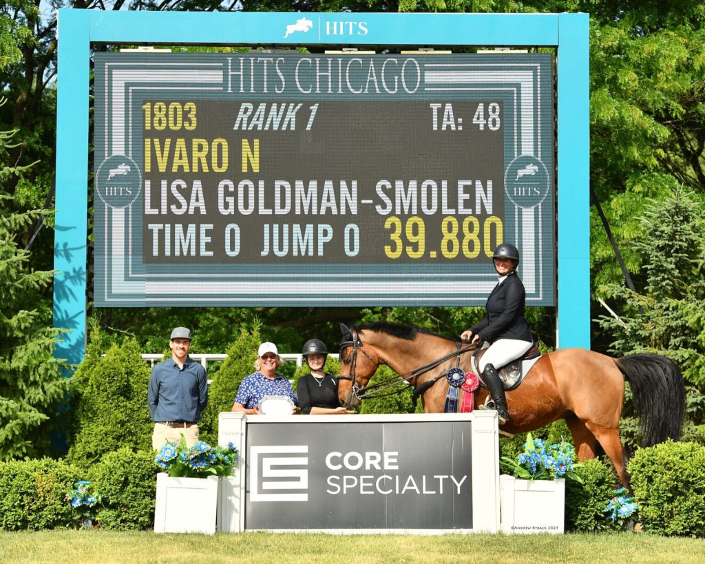 In the jumper ring, Lisa Goldman-Smolen (USA) and Ivaro N topped a seasoned field to win the $35,000 Core Specialty Insurance Grand Prix. Riders gathered Saturday, June 22, to take on a challenging track designed by Juan Alvarez of San Jose, Costa Rica. Goldman-Smolen delivered two clear first rounds aboard her mounts Romeo B and Ivaro N, but it was the talented Ivaro N that produced the only double-clear effort of the day to claim the lion’s share of the prize money.