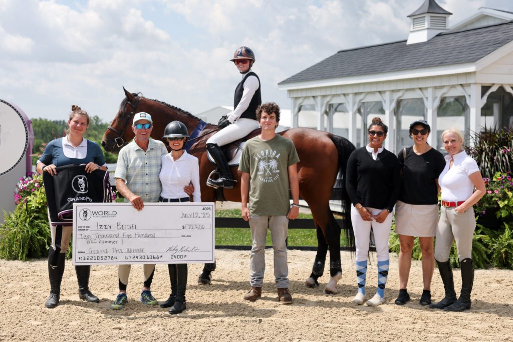 Wilmington, Ohio – July 12, 2025 – Her list of grand prix wins is long, but Saturday morning marked a special victory for Izzy Beisel (USA) at World Equestrian Center – Wilmington (WEC) Summer I. Out of a 22-horse field and a 6-horse jump-off, Beisel piloted her father’s, Contigo, to his first ever grand prix win in the $35,000 Grand Prix of Wilmington.
