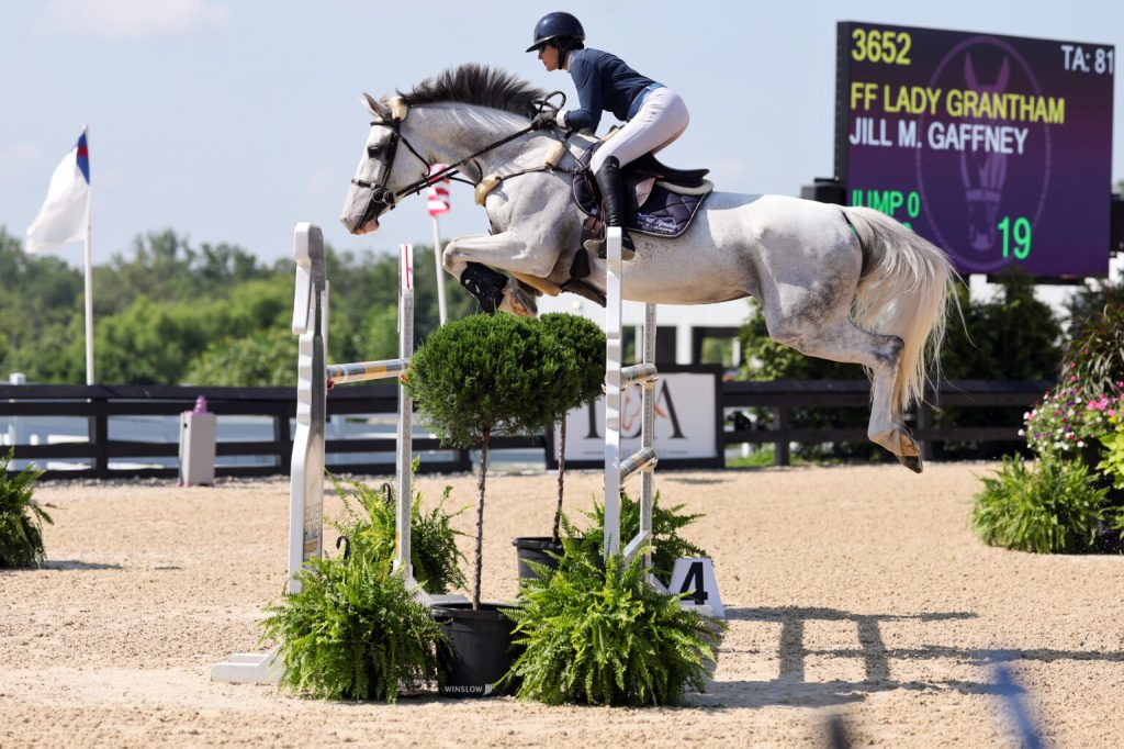 Jill Gaffney (USA) piloted her nine-year-old Dutch Warmblood (KWPN) mare, FF Lady Grantham (Diabolo D’esquelmes x Walesa M), to second place in a time of 39.267 seconds.
