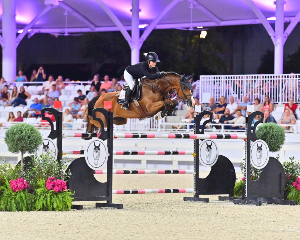 Chloe Reid (USA) was the first to return over the short course aboard Team Reid’s Crossover 4, a scopey 12-year-old Hanoverian gelding (Cascadello x Chacco-Blue). The pair set a strong early standard, crossing the timers in 40.15 seconds, which held up for bronze honors.