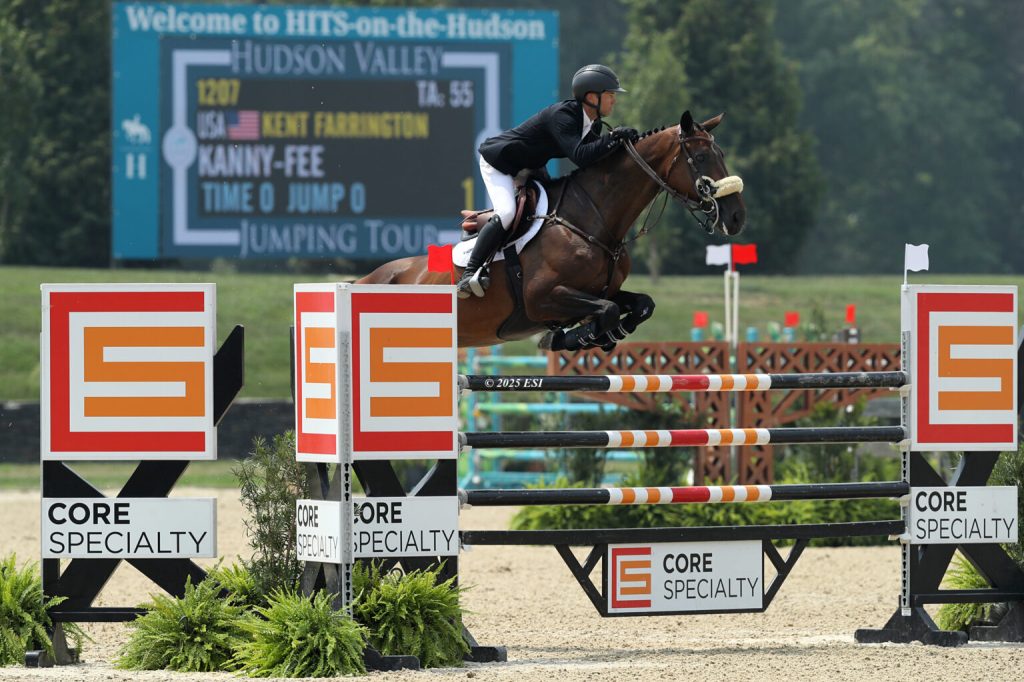 Saugerties, United States – July 26, 2025 – As the temperature heated up at Hits Hudson Valley on the morning of Saturday, July 26, 2025, so did the competition. Four days of international show jumping competition culminated in the week’s premier event, the $116,050 Core Specialty Insurance Grand Prix CSI 3*. Concluding FEI competition in the second week of the popular Hudson Valley Jumping Tour®, the class was the second three-star-rated grand prix of the series, which offers national hunter, jumper, and equitation competition, a weekly CSI 3* division, and also featured the prestigious World Champion Hunter Rider (WCHR) rating throughout Hits Hudson Valley V. Fresh off a victory in Thursday’s $62,480 Welcome Stake CSI 3*, FEI world number one Kent Farrington (USA) and Kanny-Fee doubled down for a repeat win.