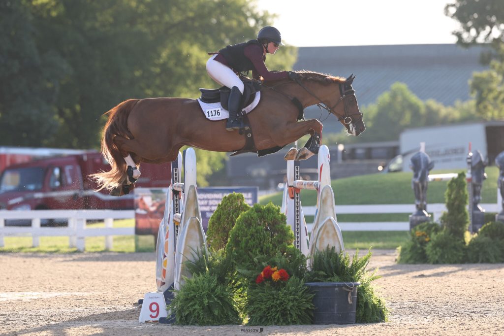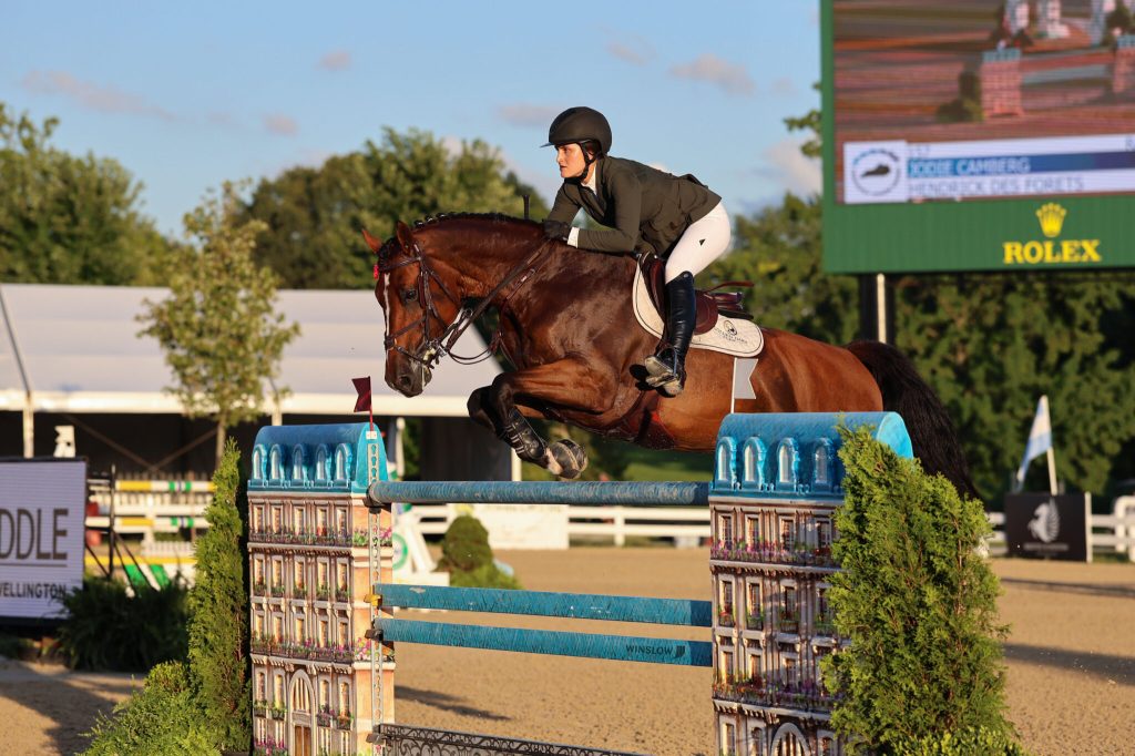 Lexington, Kentucky – July 26, 2025 – It was all about speed and accuracy on Saturday night during the $50,000 Rood & Riddle Kentucky Grand Prix. A huge crowd gathered at the Rolex Stadium during the highlight event, which was also a part of the Kentucky Horse Park’s annual “Hats Off Day.” A talented field of athletes was narrowed down to six combinations for the jump-off, where only the fastest had a shot at the podium. Summer Justus (USA) of Lexington, Ky, galloped home with the winning prize aboard her partner of four years, Lausbub 458. Kady Abrahamson (USA) with Martini VDL and Jodie Camberg (USA) with Hendrick des Forets were hot on her heels, but finished just off the pace to place second and third, respectively.