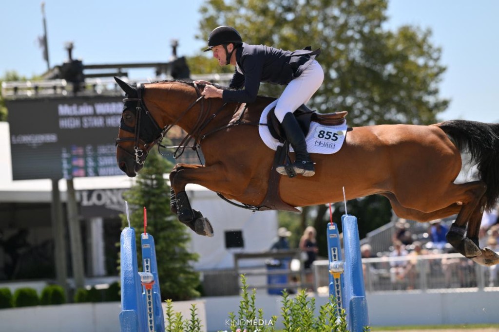 Bridgehampton, New York, United States – August 29, 2025 – Ten of the 43 horse-and-rider combinations representing 14 countries made it to the jump-off in Friday’s $116,100 Douglas Elliman Grand Prix Qualifier CSI 5*, presented by Longines, which saw a challenging 16-effort, 1.60m course designed by Nick Granat during the initial round. Each entry seemed to get faster than the last until penultimate rider McLain Ward (USA) stepped into the ring with High Star Hero, securing the win with a double-clear effort in 36.84 seconds.