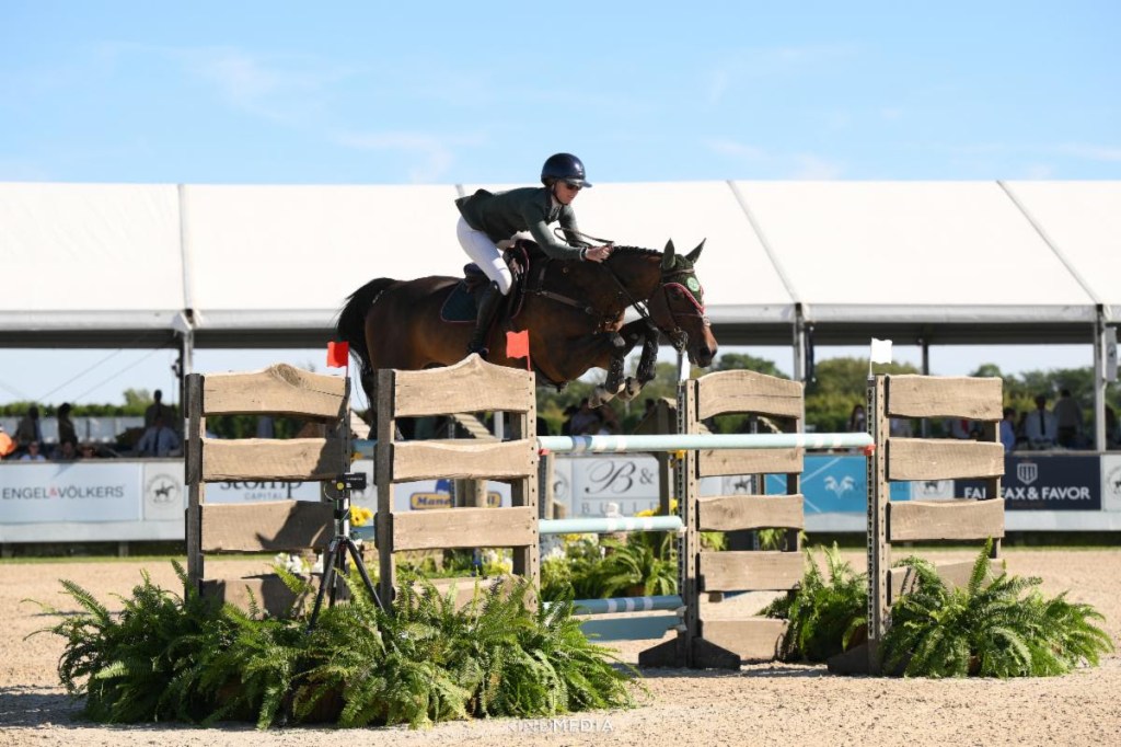 The double-gold medalist from the 2025 Gotham North/North American Youth Jumping Championships (NAYC) presented by USHJA once more showcased her skill aboard NAYC partner Barclino B, clinching the win with a faultless score of 39.58 seconds. This marks her first time at the Hampton Classic and her first FEI 5* victory.