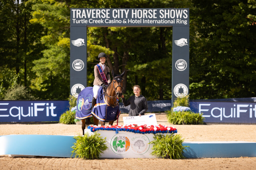 “She has really progressed this season,” said Jacobs of her 10-year-old Swedish-bred mare (Qualdandro X VDL Indoctro), a mount that has pocketed five international top-tens throughout the Traverse City Horse Shows season, including a three-star ranking win during the Spring Series. “We took our time with her. She has so much ability, jump and scope and we’ve been trying to harness that and control it. Now’s the time for her to be quick and competitive.”