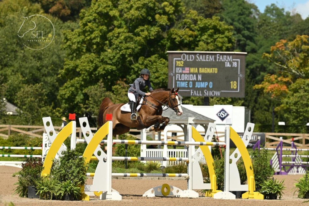 North Salem, United States – September 12, 2025 – Competition at the 2025 Old Salem Farm September Horse Shows presented by J.P. Morgan Private Bank continued to heat up on Friday as many speed specialists took to the International Arena, aiming for the top of the leaderboard in the $37,000 Speed Stake CSI 4*. None proved faster than Mia Bagnato (USA), who galloped to the only time under 60 seconds with Florida N and brought home the victory in a blistering 57.99 seconds.