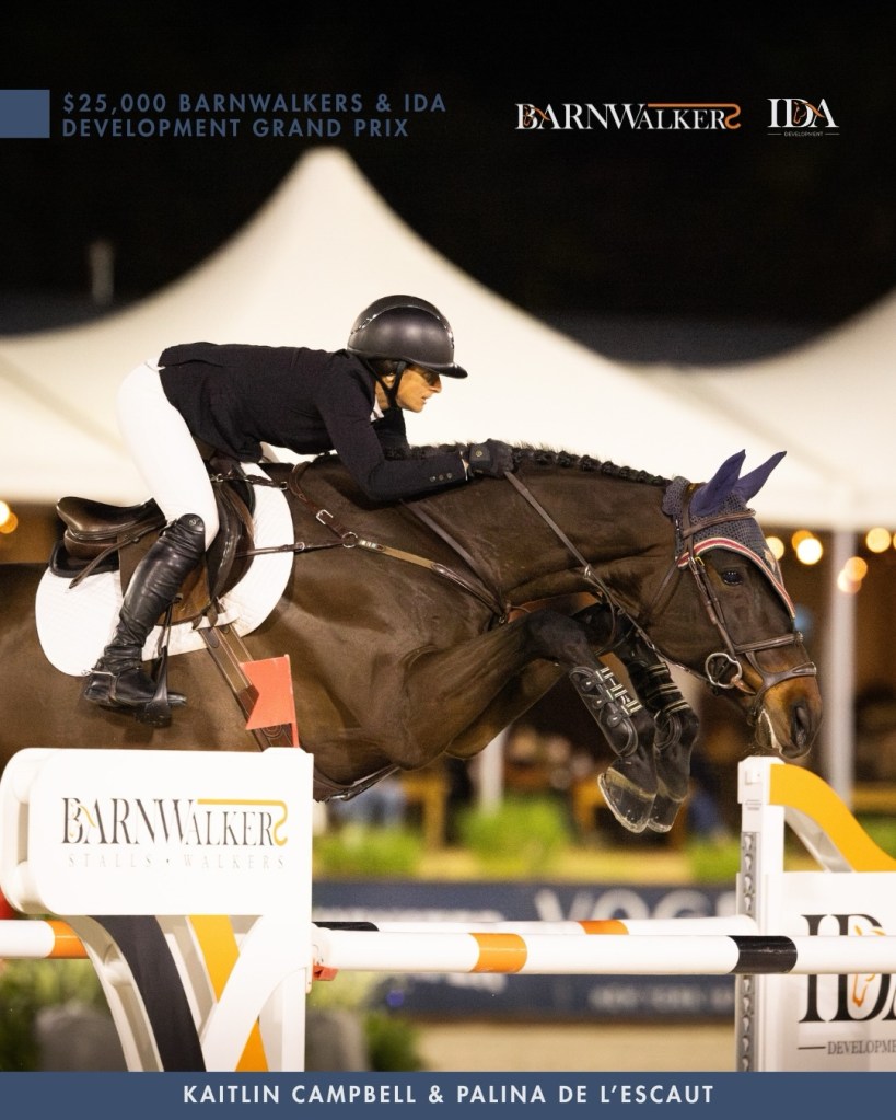 Thermal, California – January 10, 2026 – With one veteran partner and one up-and-coming mount, Kaitlin Campbell (USA) claimed a one-two finish in the $25,000 Barnwalkers & IDA Development Grand Prix, held on Saturday, at Desert International Horse Park in Thermal, Calif. Campbell clinched the win aboard Palina de L’Escaut, and she finished in second place with Cosm Questa VD Heffinck.
