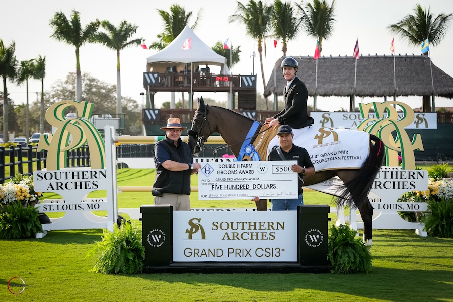 A tradition at Wellington International, Lutz’s groom, Rene Murillo Garcia, was presented with the Double H Farm Grooms Award and a $500 prize for his care and preparation of Katriona.