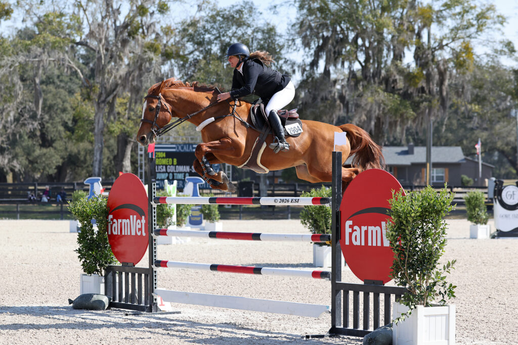 Ocala, Florida – January 31, 2026 – Riders at Hits Ocala raced to put the finishing touches on their warm-ups on Saturday, January 31, as the penultimate day of competition during Hits Ocala Premiere week came to a head for the $60,000 FarmVet Grand Prix. Held at the iconic Hits Post Time Farm, the popular Hits Ocala Winter Circuit features 10 weeks of top-tier hunter, jumper, and equitation competition in “The Horse Capital of the World,” including a weekly national grand prix. Always one to bring the heat in a jump-off, Lisa Goldman-Smolen (USA) stepped on the gas with her rising star Romeo B to take the win with a leading time of 40.480 seconds.