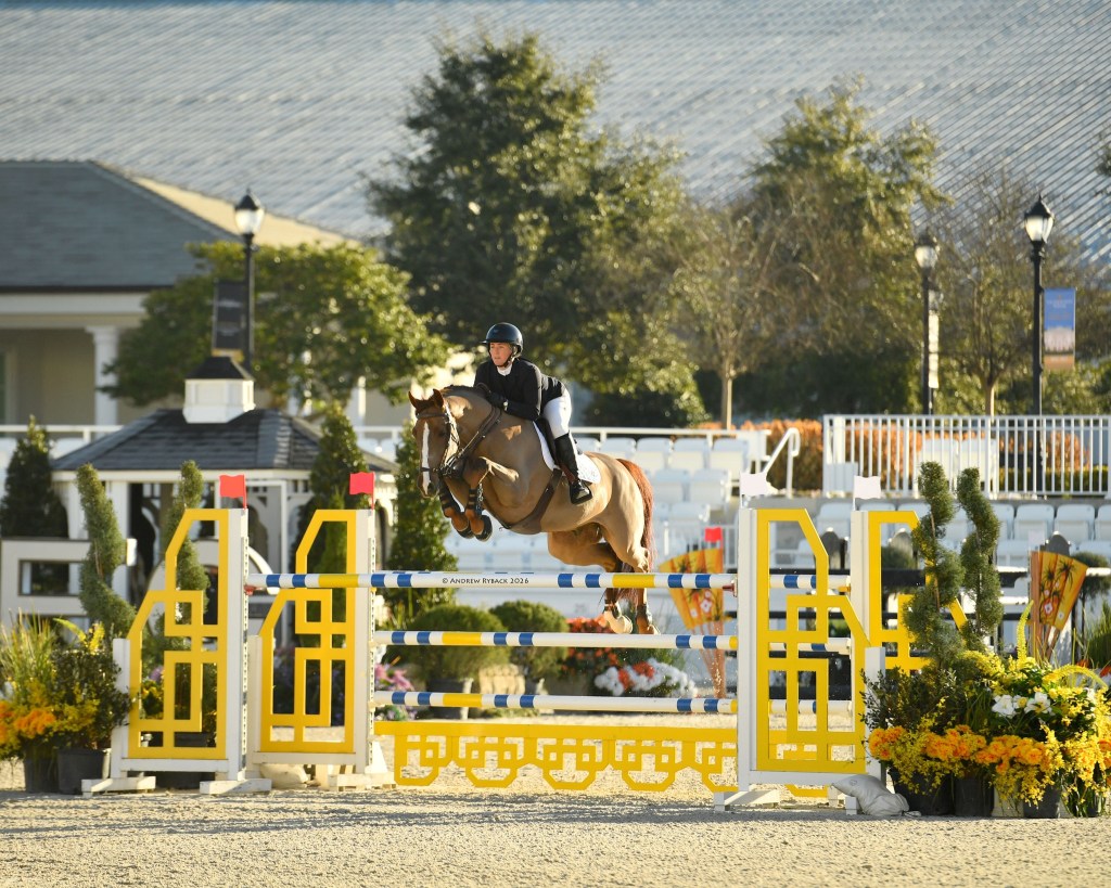 Schaefer (USA) and the 12-year-old Dutch Warmblood (KWPN) gelding (Douglas x Cash) rode their momentum on Sunday. She piloted the to a speedy, clear round in 36.38 seconds to take over second place, putting Dello Joio into third for good.