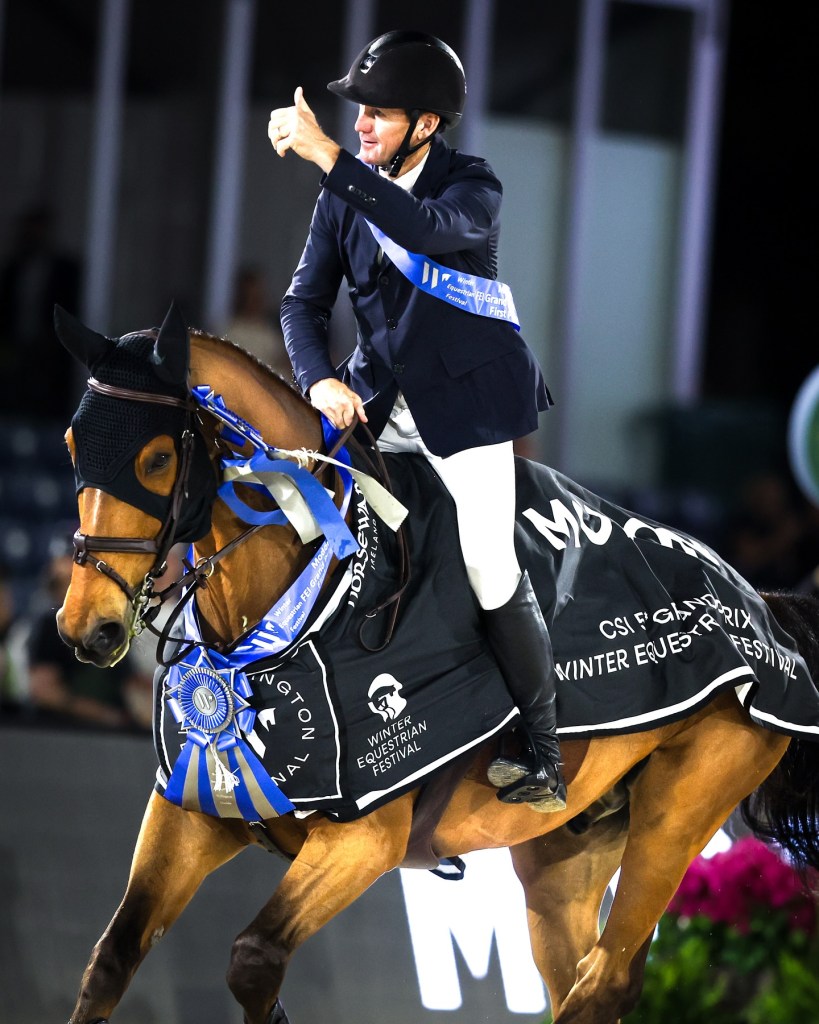 Despite an extra stride to the final fence on course, High Star Hero’s (Zazu x Darco) footspeed sealed the victory, which was Ward’s fourth in a WEF 7 grand prix. “I know exactly why I do well in this grand prix,” said Ward, whose last win came in 2020 with HH Azur. “I come a little later to Florida than most people and always start a bit rusty. I often think, ‘ah, I’m not doing very well.’ Then, I sharpen things up about this time.