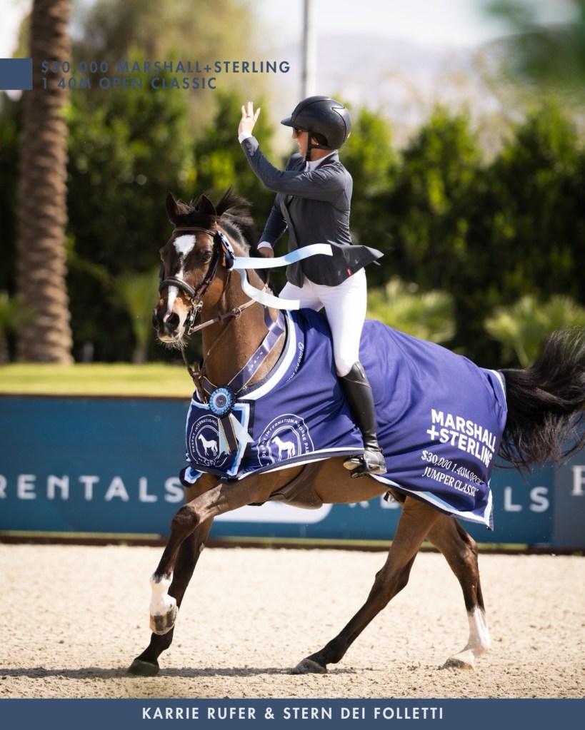 Thermal, California – March 01, 2026 – Karrie Rufer (USA) can no longer count on one hand her major victories this winter after she picked up another Desert Circuit win on Sunday, March 1, in the $30,000 Marshall+Sterling 1.40m Open Classic.