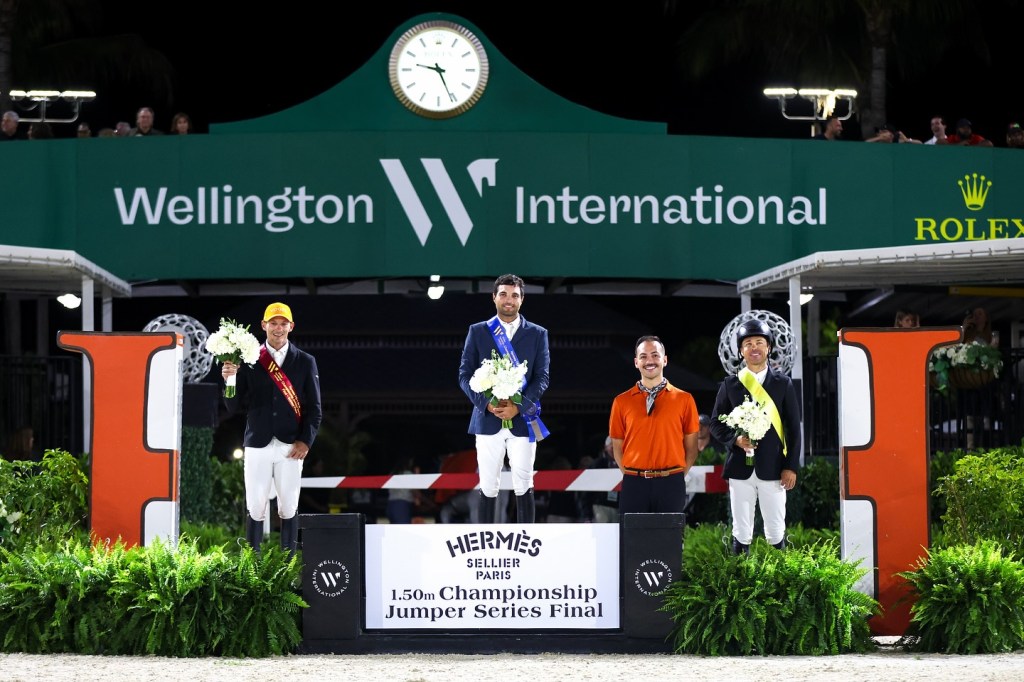 Wellington, United States – March 21, 2026 – Twelve weeks of Hermès 1.50m competition came to a peak on Saturday evening in the $150,000 Hermès Championship Jumper Series Final CSI 4*– 1.50m during the penultimate week of the 2026 Winter Equestrian Festival (WEF) at Wellington International. One of the all-time winningest riders at the venue, Kent Farrington (USA) was back on the podium in the grand finale of the series.